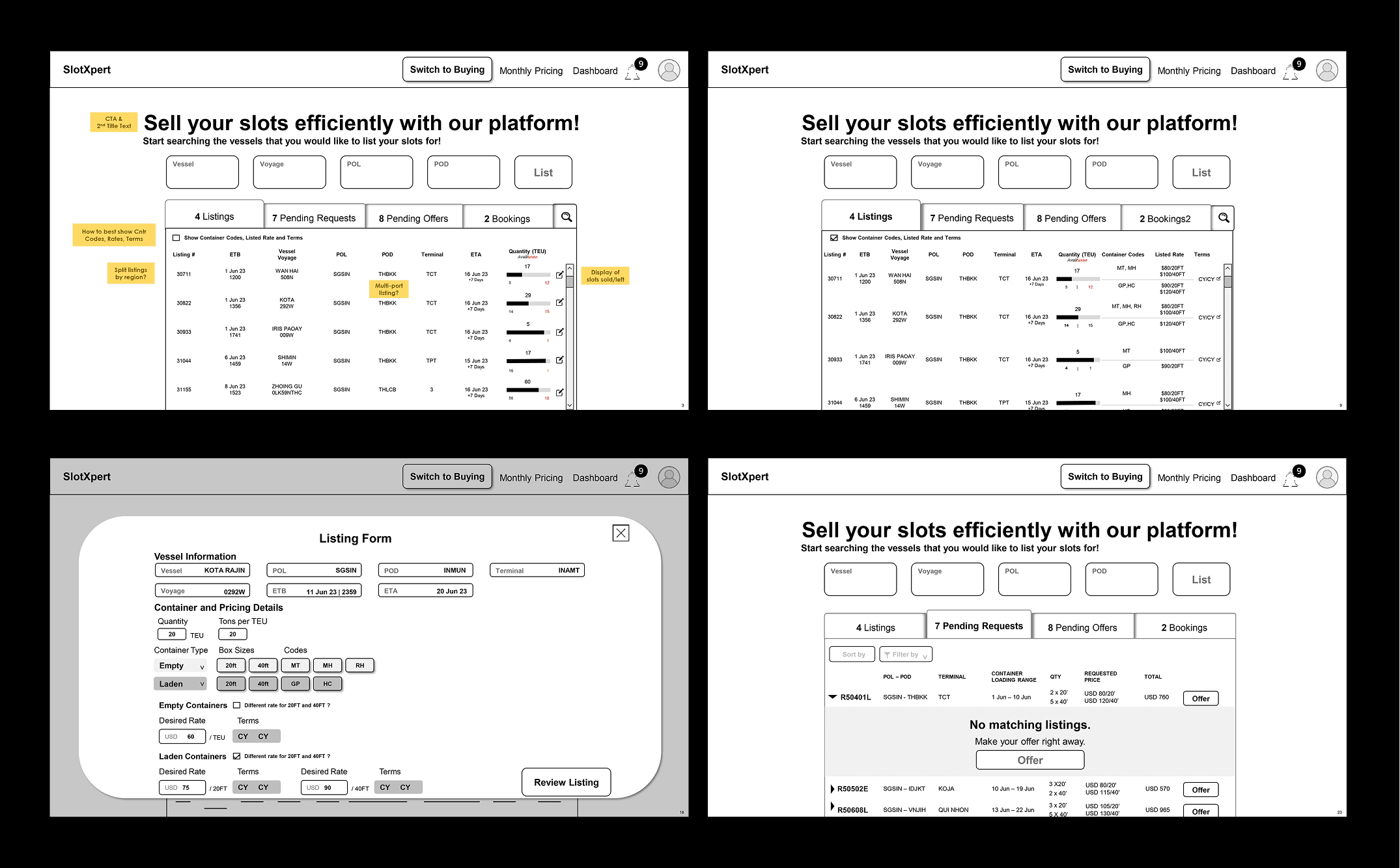 Before the redesign, internal surveys were conducted with buyers and sellers to understand usability and confidence levels in key workflows such as booking and listing containers.